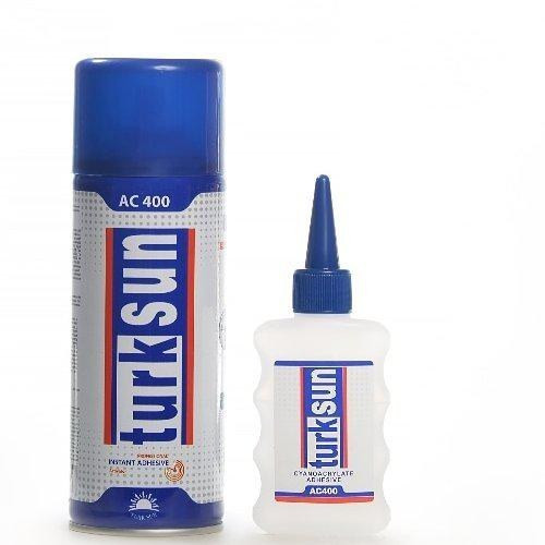 چسب 123 حجم 400 میلی لیتری ترکسان مدل TURK SUN AC 400 نوعی چسب دو جزئی است که از یک چسب سیانواکریلیتی با ویسکوزیته بالا و یک اسپری فعال کننده (هاردنر) تشکیل شده است. این چسب به دلیل غلظت مناسب چکه نمی کند و ریزش ندارد به همین دلیل، علاوه بر سطوح افقی، برای استفاده در سطوح عمودی نیز مناسب است. از موارد مصرف این چسب می توان به صنایع چوب و ام دی اف (MDF) اشاره کرد. همچنین در کارهای ساخـتمانی و نماکاری سنگ ساختمان (جهت تثبیت موقت سنگ و کاشی) مورد استفاده قرار می گیرد.