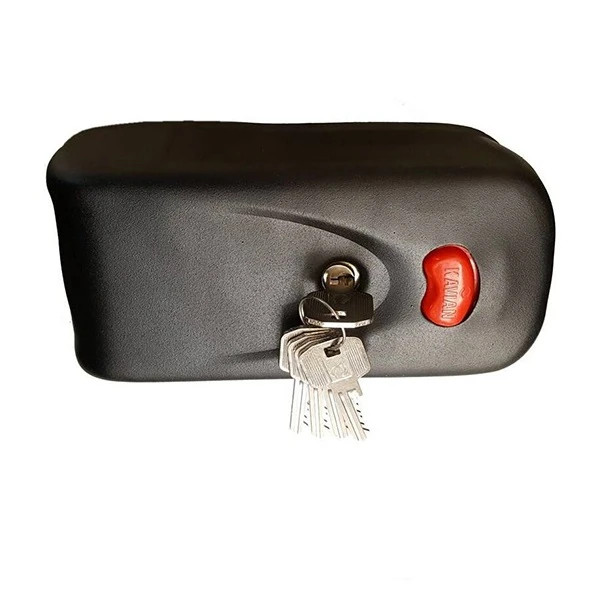 قفل برقی کاویان یا در اصطلاح قفل کله گاوی یا قفل لاکپشتی از خانواده قفل های برقی میباشد که توانایی نصب بر روی درب های راست گرد و چپ گرد را دارد.ظاهر قفل برقی ضامن دار کاویان توسط یک کاور مشکی رنگ احاطه شده که جلوه زیبا دارد و از دید کاریران این قفل ها داشتن ظاهر زیبا و مقاومت بالا از دلایل انتخاب این قفل نام آشنای ایرانی است. قفل برقی ضامن دار کاویان دارای مقاومت بالا در برار فشار خارجی به درب هاست که یکی از عواملی است که این قفل را بر روی درب های پارکینگی که جک درب پارکینگ دارد نصب می کنند.